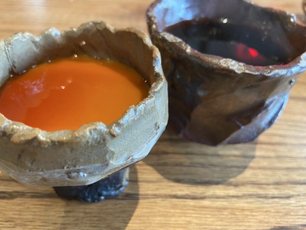 そして嬉しいサプライズだったのが、食後のデザート。まず、器がとっても可愛い!手作り感のある土ものの器に入ったデザートは、まるで作品のようで、思わず写真をパシャリ。見た目にも癒されて、もちろん味も文句なしの美味しさでした。