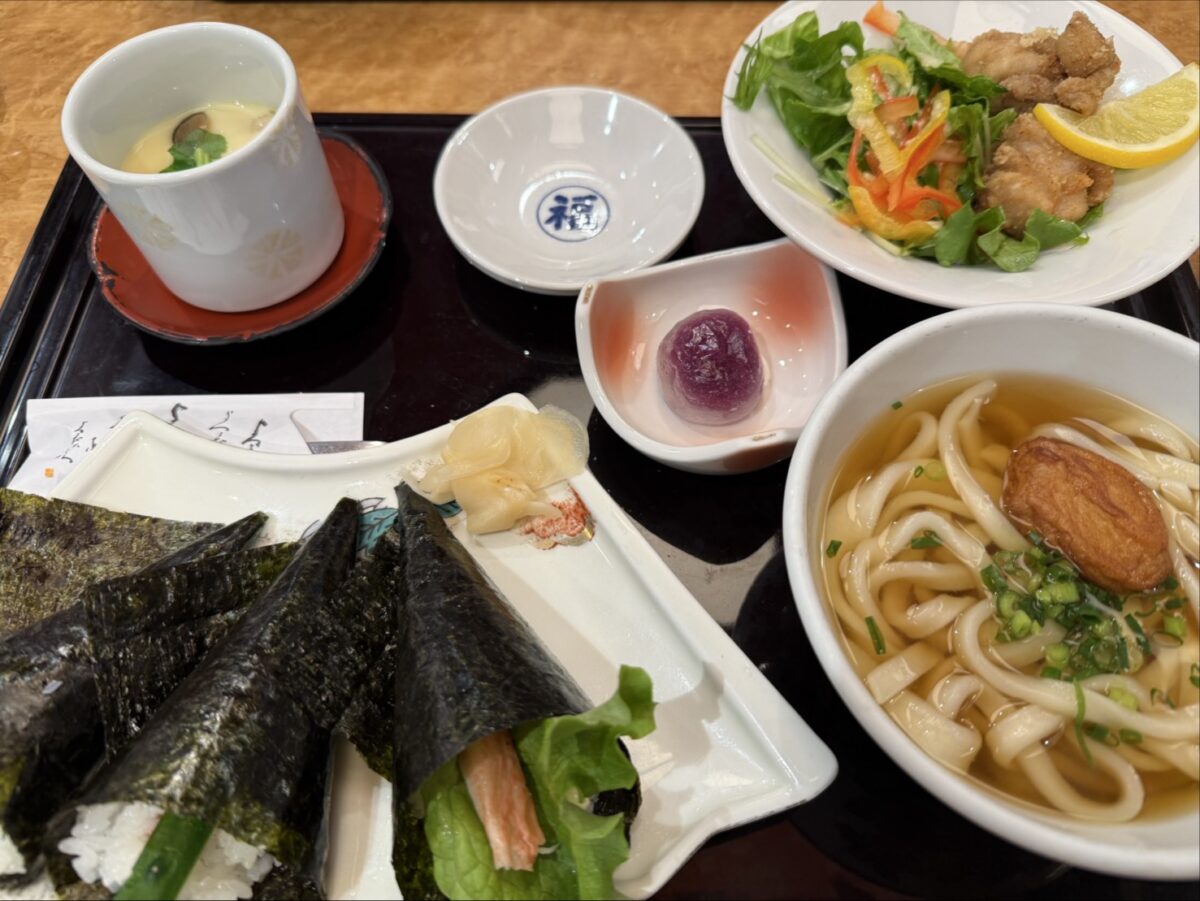 ランチ|さつま揚げ入りうどんが嬉しい。鹿児島【ふく福】の手巻き寿司セット